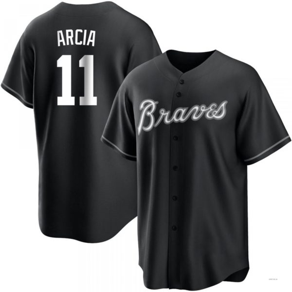 Atlanta Braves #11 Orlando Arcia White Black Jersey Stitches Baseball Jerseys