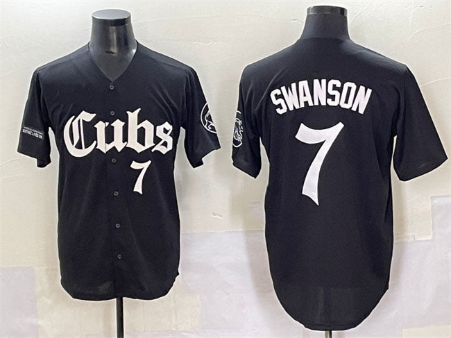 Chicago Cubs #7 Dansby Swanson Black 'Gothic North Side Edition' Vapor Premier Limited Stitched Baseball Jersey