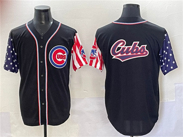 Chicago Cubs Team Big Logo Black 2025 Independence Day Vapor Premier Limited Stitched Baseball Jersey