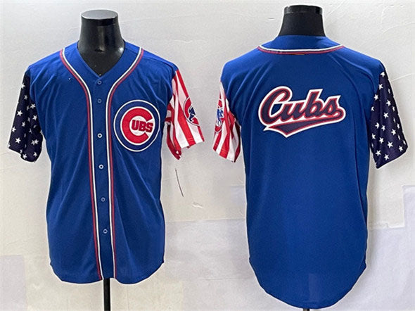 Chicago Cubs Team Big Logo Royal 2025 Independence Day Vapor Premier Limited Stitched Baseball Jersey