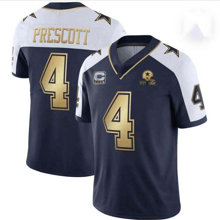 D.Cowboys #4 Dak Prescott Navy Team Gold C Patch Stitched American Football Jerseys