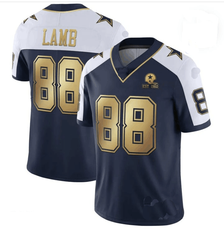 D.Cowboys #88 CeeDee Lamb Navy Team Gold C Patch Stitched American Football Jerseys
