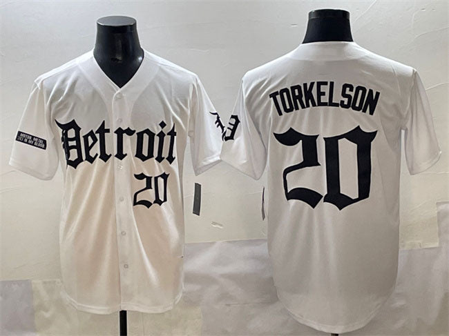 Detroit Tigers #20 Spencer Torkelson White 'Motor Gothic Edition' Vapor Premier Limited Stitched Baseball Jersey