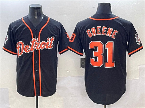 Detroit Tigers #31 Riley Greene Black With Patch Cool Base Stitched Baseball Jersey