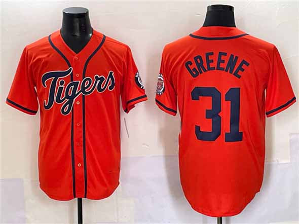 Detroit Tigers #31 Riley Greene Orange With Patch Cool Base Stitched Baseball Jersey