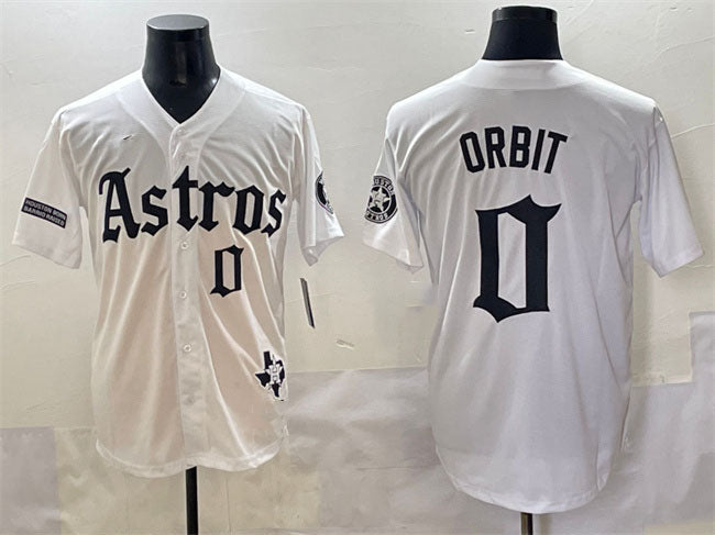 Houston Astros #0 Orbit White Gothic 'Houston Born Barrio Raised' Limited Stitched Baseball Jersey