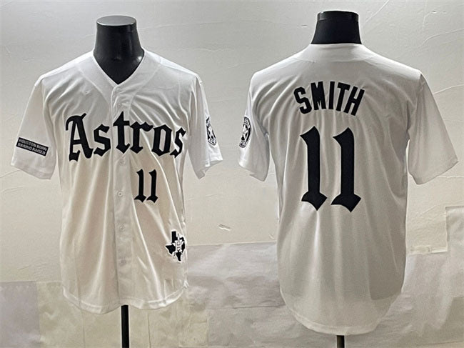 Houston Astros #11 Cam Smith White Gothic 'Houston Born Barrio Raised' Limited Stitched Baseball Jersey