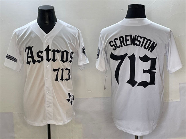 Houston Astros #713 Screwston White Gothic 'Houston Born Barrio Raised' Limited Stitched Baseball Jersey