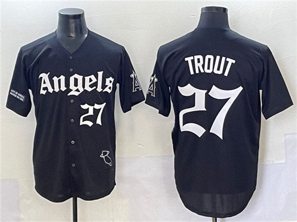 Los Angeles Angels #27 Mike Trout Black 'Gothic Halo Edition' Vapor Limited Stitched Baseball Jersey