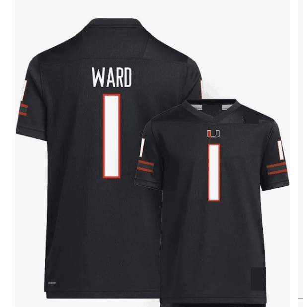 M.Hurricanes #1 Cam Ward Football Jersey - Black Stitched American College Jerseys