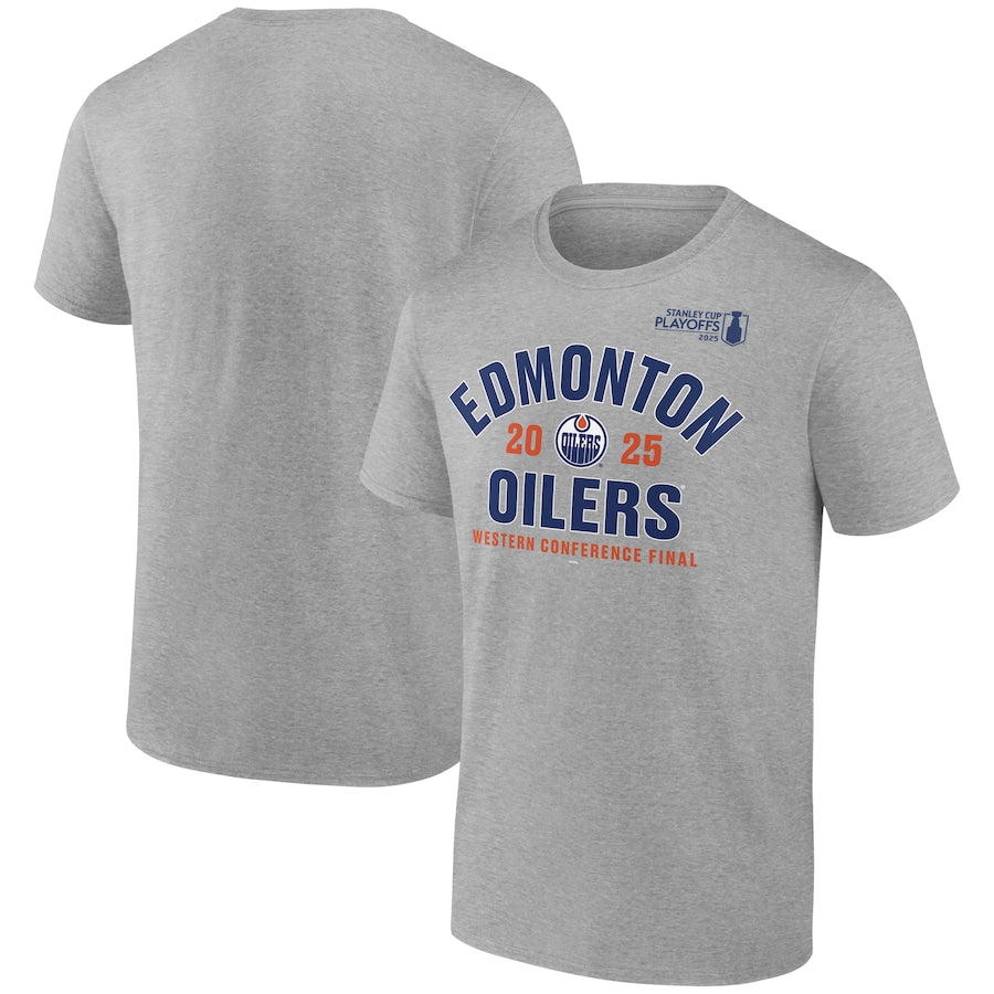 Men's Edmonton Oilers Heather Gray 2025 Stanley Cup Playoffs Western Conference Final Contender T-Shirt