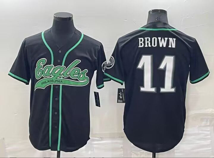 P.Eagles #11 A.J. Brown Black Stitched Baseball Jerseys