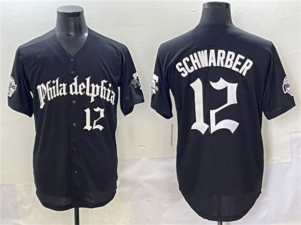 Philadelphia Phillies #12 Kyle Schwarber Black Gothic Vapor Limited Stitched Baseball Jersey