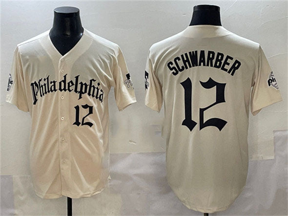 Philadelphia Phillies #12 Kyle Schwarber Cream Gothic Vapor Limited Stitched Baseball Jersey