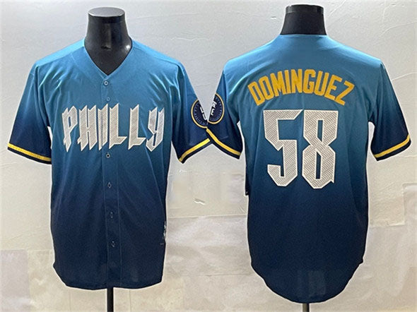 Philadelphia Phillies #58 Seranthony Domínguez Blue 2024 City Connect Limited Stitched Baseball Jersey