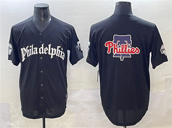 Philadelphia Phillies Team Big Logo Black GOTHIC Vapor Limited Stitched Baseball Jersey