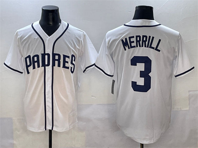 San Diego Padres #3 Jackson Merrill White Cool Base Stitched Baseball Jersey