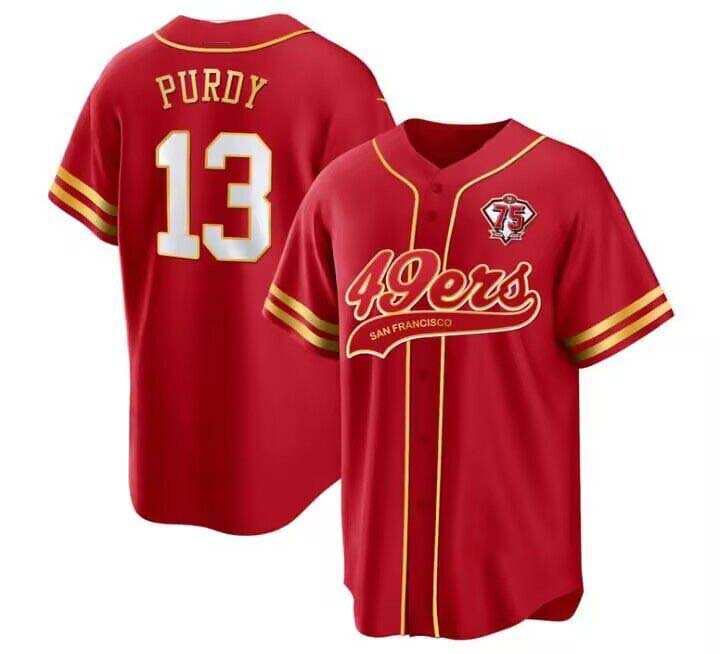 SF.49ers #13 Brock Purdy Red 75th anniversary Cool Base Stitched American Baseball Jersey