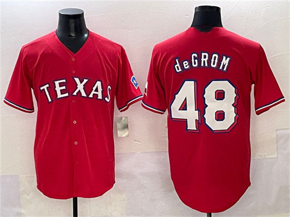 Texas Rangers #48 Jacob deGrom Red With Patch Cool Base Stitched Baseball Jersey