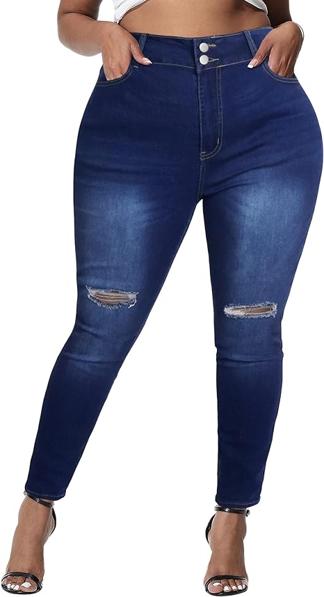 Womens Plus Size Skinny Jeans Stretchy High Waisted Ankle Jean