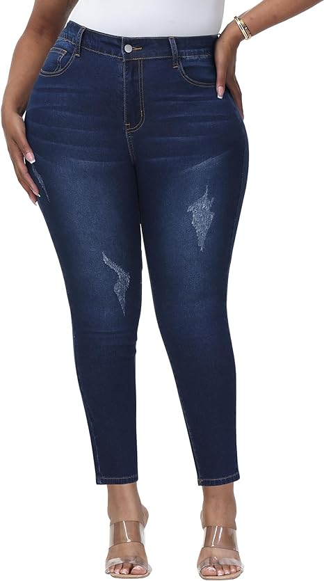 Womens Plus Size Skinny Jeans Stretchy High Waisted Ankle Jean