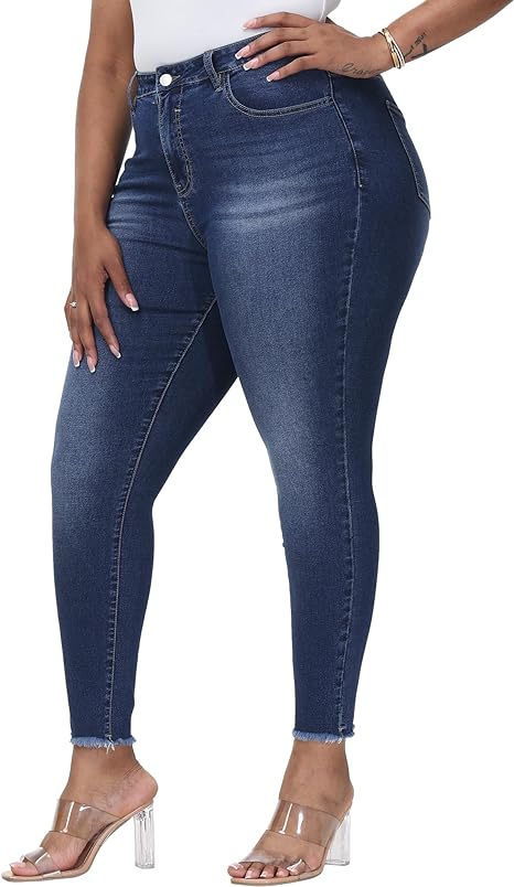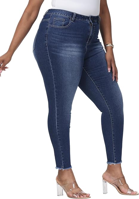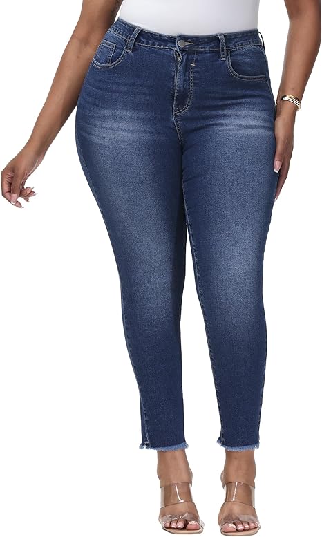 Womens Plus Size Skinny Jeans Stretchy High Waisted Classic Ankle Jean