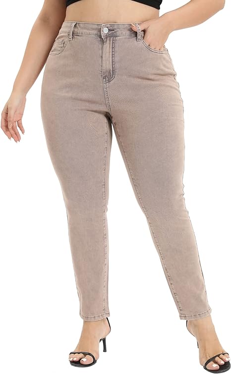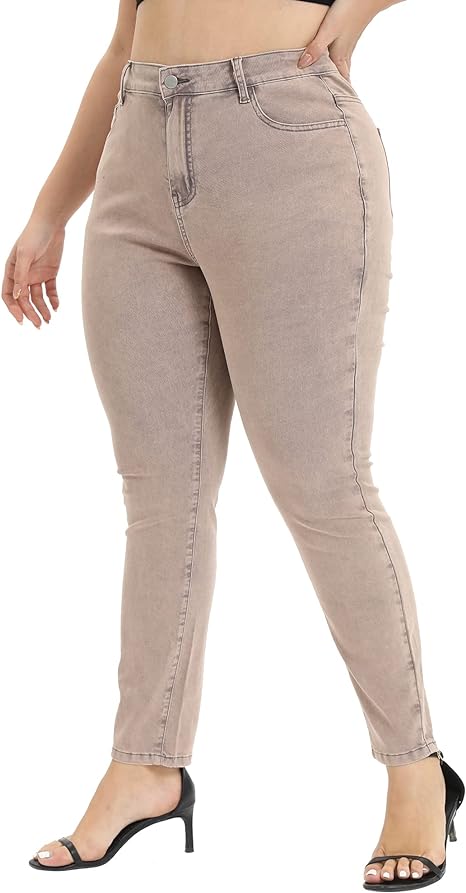Womens Plus Size Skinny Tapered Pants Comfy Stretch High Waist Ankle Jean