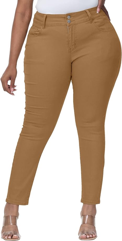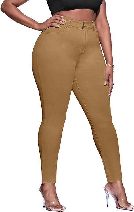 Womens Plus Size Skinny Tapered Pants Comfy Stretch High Waist Ankle Jean
